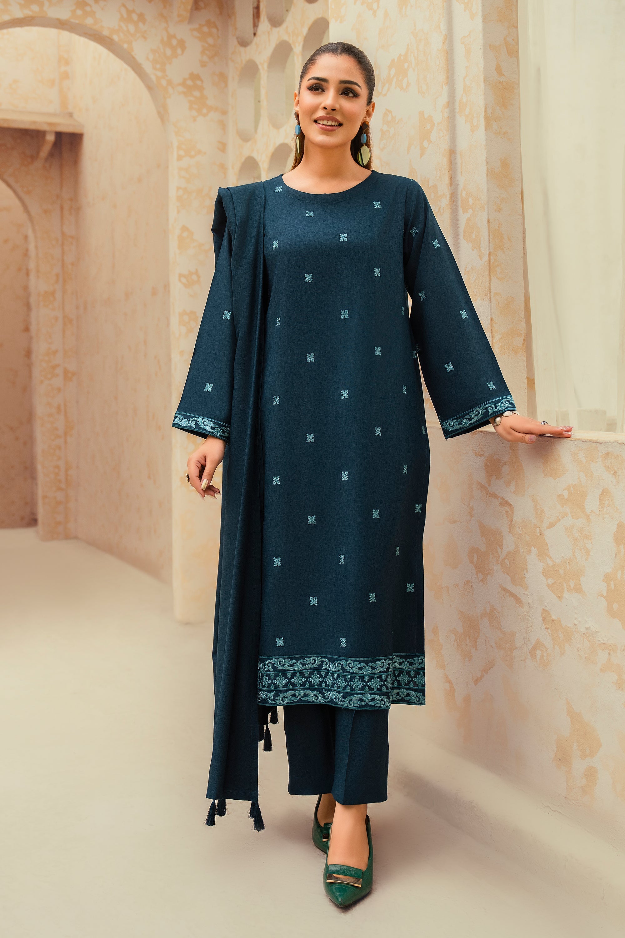 Elevate your ethnic wardrobe with this stunning zink-colored three-piece set. The outfit features a beautifully tailored shirt with intricate embroidery adorning the sleeves and daman, adding a touch of elegance and sophistication. Paired with straight, loose trousers, this ensemble offers both comfort and style. The harmonious blend of traditional craftsmanship and modern design ensures you'll make a statement wherever you go.